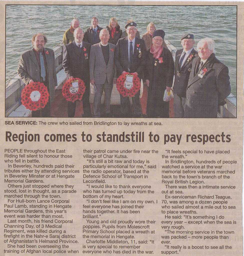 Bridlington 2012 Members of the North East Branch attending the Annual Service of Remembrance and Reef Laying Ceremony at sea Related